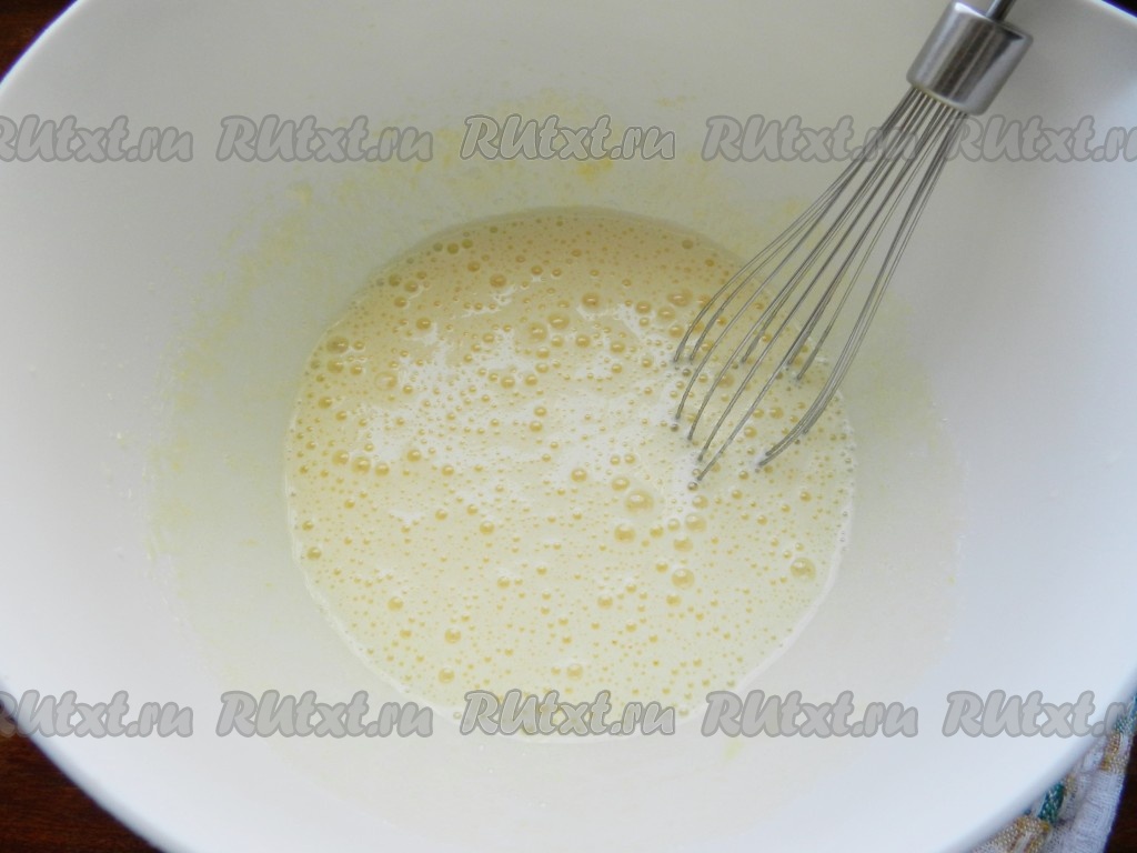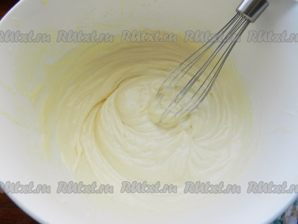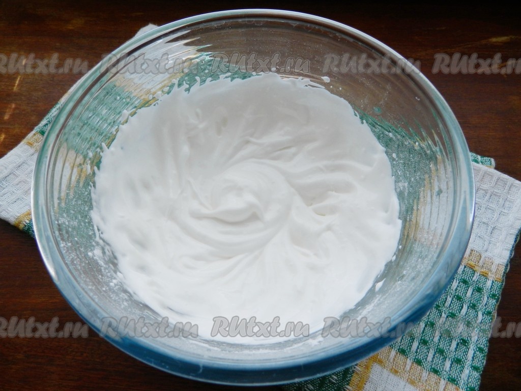 Для приготовления глазури яичный белок взбить с сахарной пудрой и лимонным соком до устойчивых пиков.