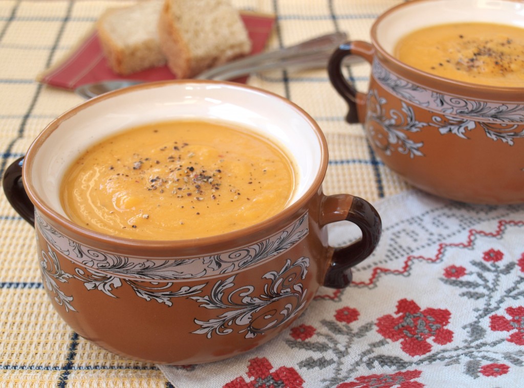 Готовый вкусный, полезный, насыщенный суп-пюре из тыквы и красной чечевицы разлить в бульонницы, посыпать молотым перцем и подать к столу. Варить это блюдо нужно на 1 раз.