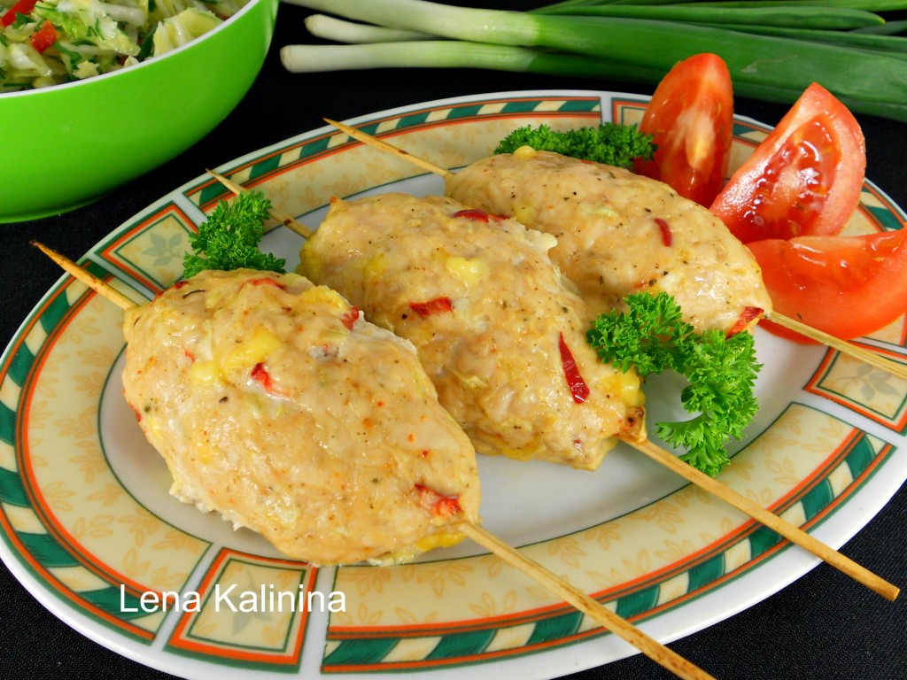 Предлагаю приготовить в духовке вкусные, нежные и сочные котлеты на деревянных шпажках в духовке. Внешне эти котлетки напоминают люля-кебабы, поэтому смотрятся они очень аппетитно. Рецепт простой, а блюдо получается отличным, его можно подать к столу и в будни, и в праздники. Всем советую приготовить!