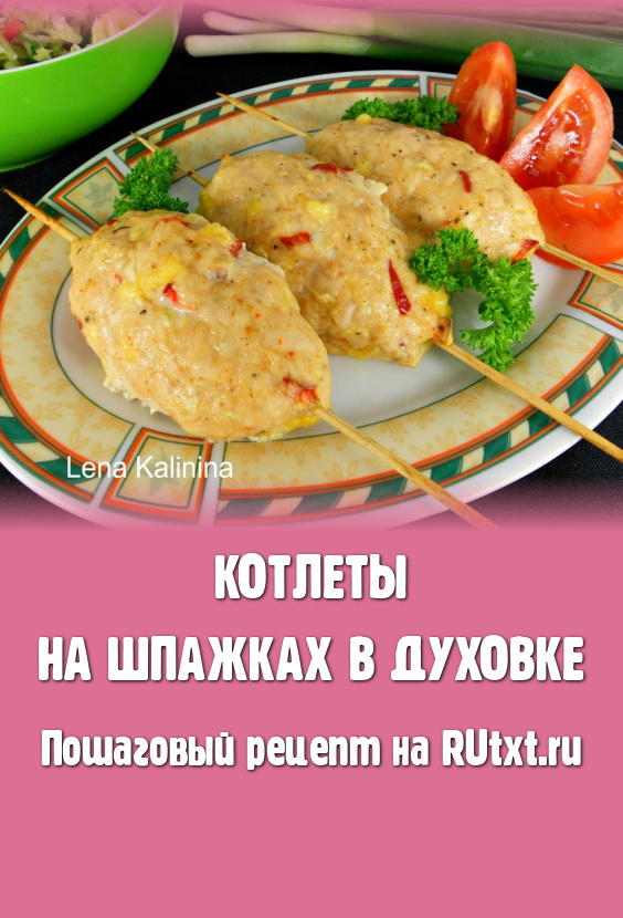 Запекать котлеты на шпажках в духовке, разогретой до 190 градусов, минут 30-35. Вкусные, аппетитные котлетки достать из духовки и в горячем виде прямо на шпажках подать к столу, дополнив любимым гарниром или овощами и зеленью.