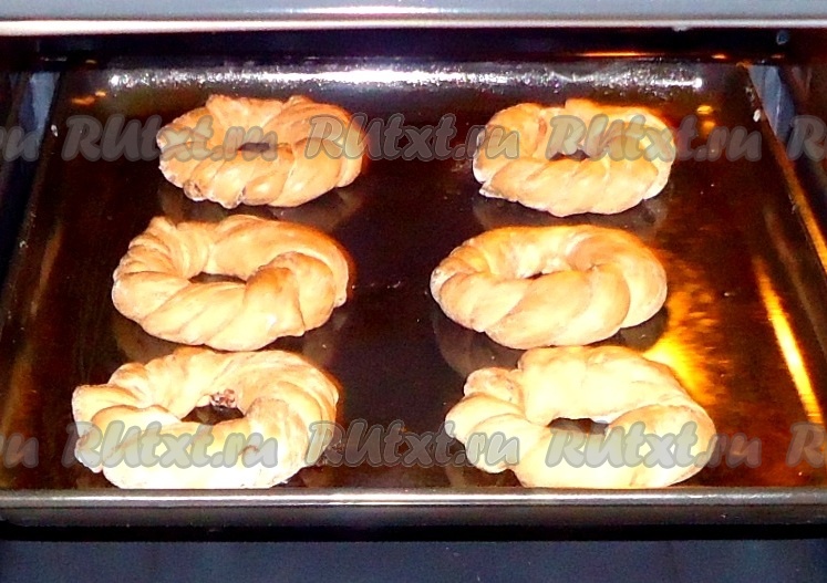 Бублики смазать растительным маслом и выпекать при температуре 180-200 градусов 20-25 минут.