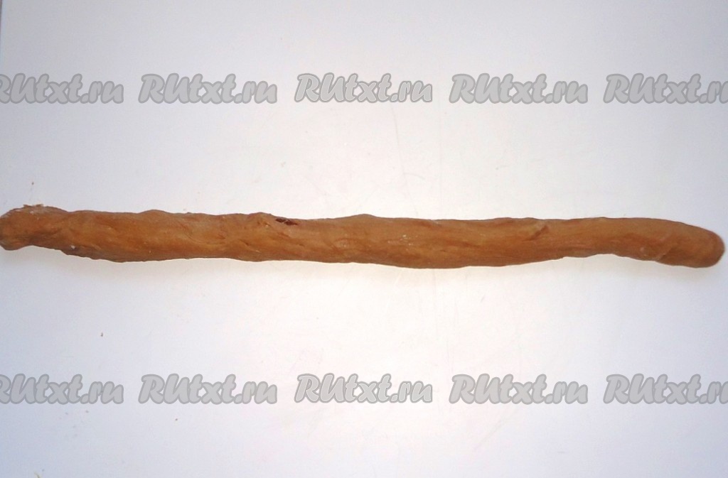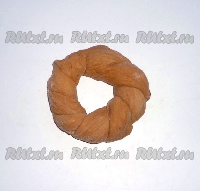 Тесто разделить на несколько кусочков, от размера кусочка будет зависеть размер бублика. Я тесто делила на 6 частей. Из каждого кусочка сделать длинную колбаску.