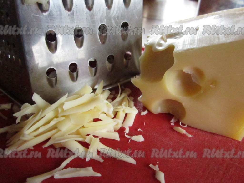 Пока мясо тушится, приготовим заправку. Для заправки сыр натрите на тёрке.
