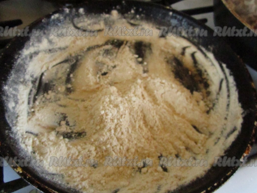 На другой сковороде без масла подсушите муку, постоянно помешивая, до золотистого цвета.