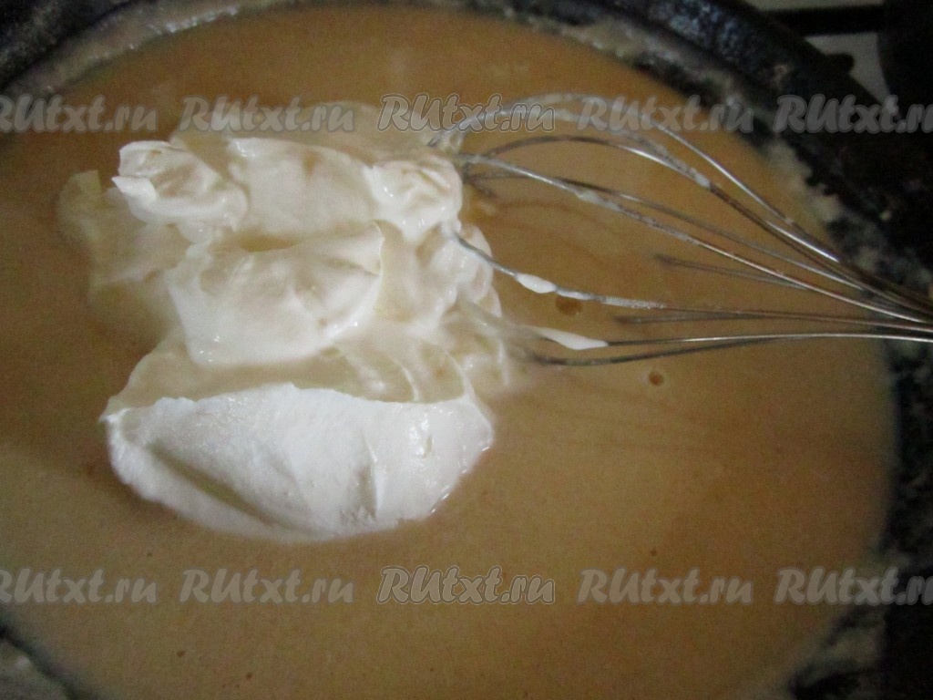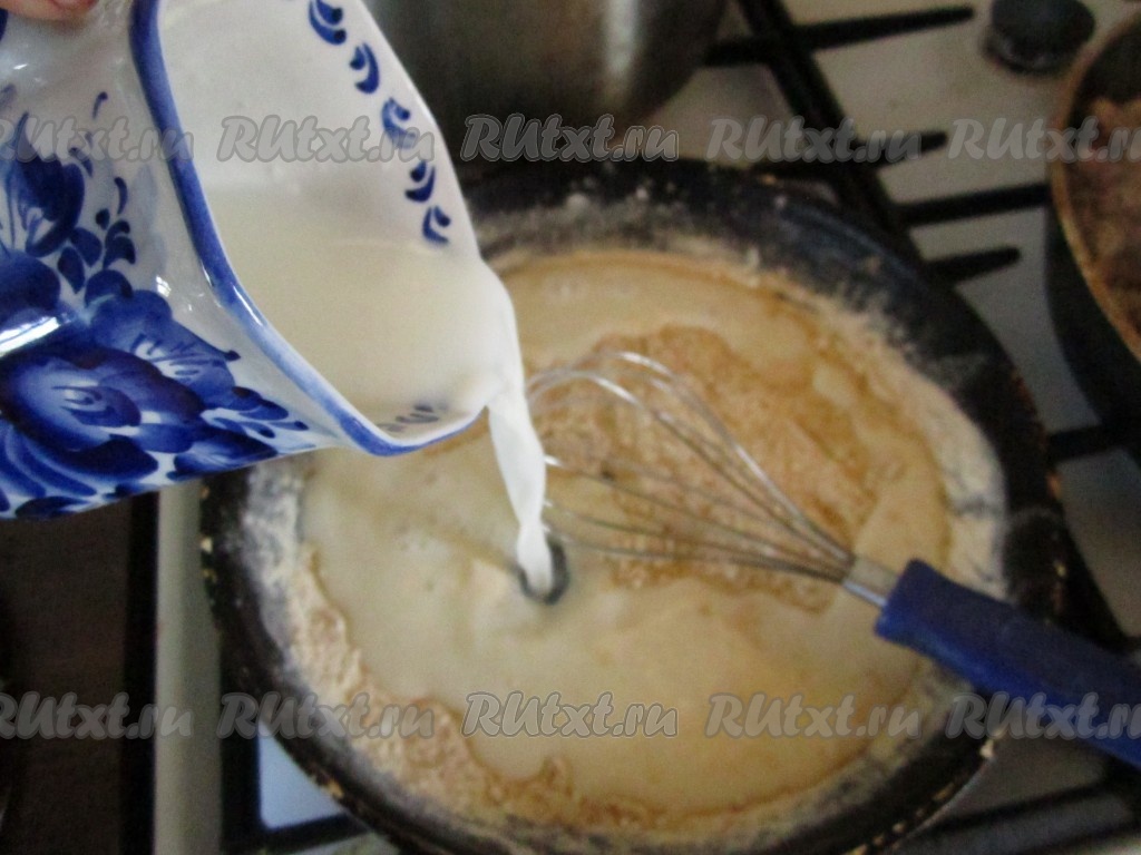 Влейте холодное молоко (или сливки). Тщательно размешайте все комочки.