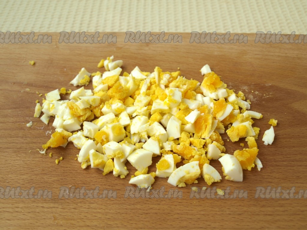 Нарезать кубиками яйца.