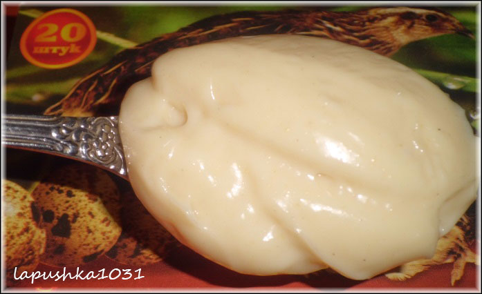 Как только масса загустеет - майонез из перепелиных яиц готов.