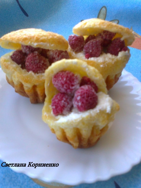 Начиняйте по своему желанию. Я начиняла сладкой творожной массой с малиной.