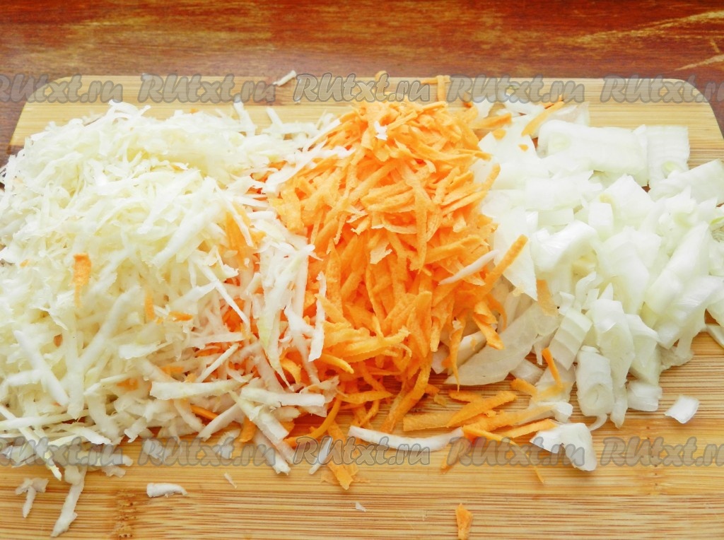 Лук нарезать, морковь и сельдерей натереть на терке.