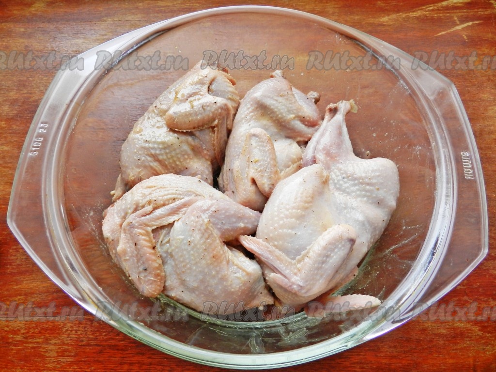 Перепелов тщательно вымыть, обсушить и натереть полученной смесью. Оставить на 1-2 часа (или более) в холодильнике.