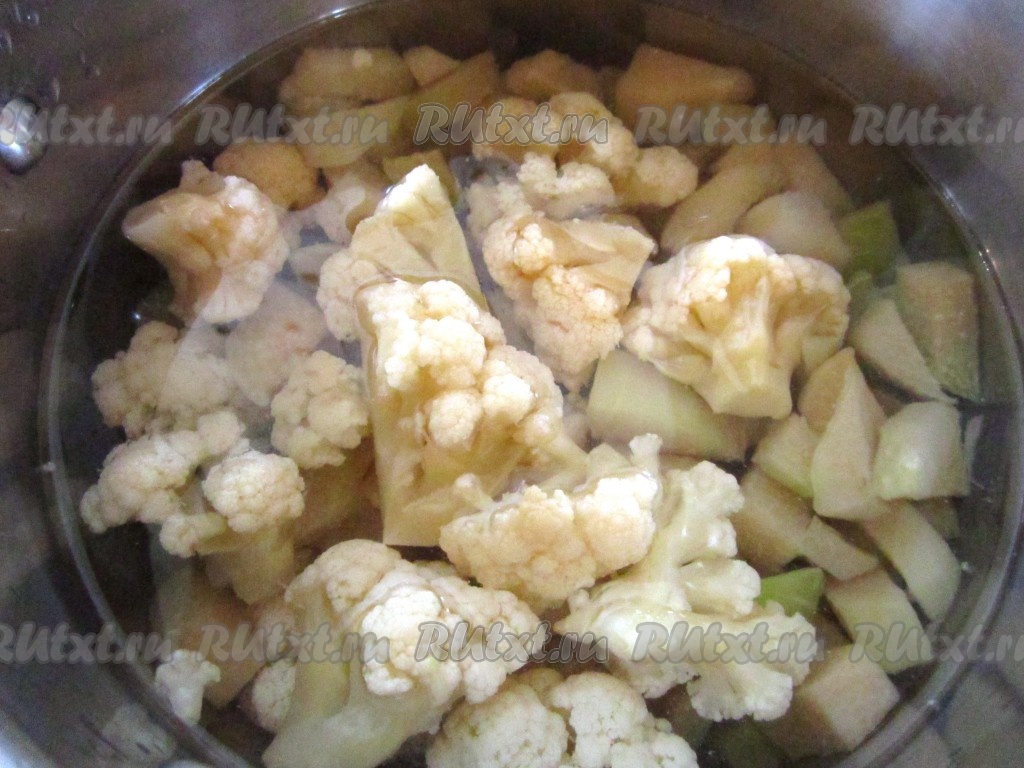 Отварите цветную капусту и кольраби в подсоленной воде до полуготовности - примерно 5-7 минут. (Готовые замороженные овощи уже бланшированы перед заморозкой, так что им будет достаточно пары минут). Слейте жидкость.