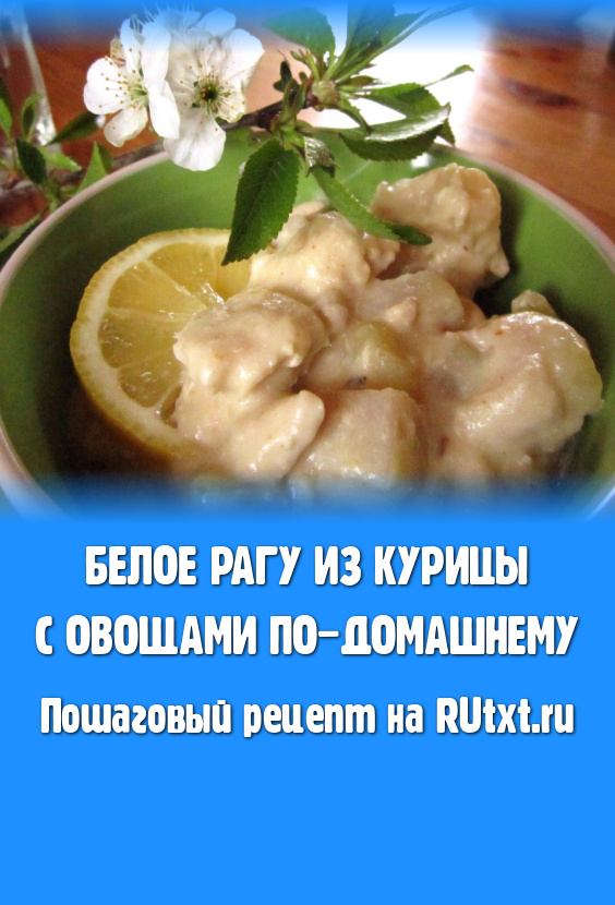 Классическое рагу - это распространённое блюдо французской кухни. Для него сначала обжаривают, а затем тушат кусочки как мяса или птицы, так и рыбы, овощей, грибов и т.д. Всё это заправляется густым соусом. Белое рагу готовится из светлого мяса в белом сливочном соусе. Французская кухня - дело тонкое и хлопотное, поэтому я представляю Вам домашний вариант для повседневного использования. Так сказать, "вариация на тему".