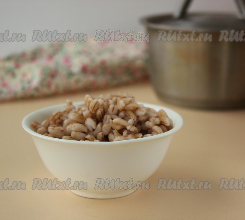 Прежде всего нужно отварить перловку, варим её отдельно, чтобы грибной бульон был прозрачным. Перловку заранее нужно залить холодной водой и оставить на 3-4 часа (можно оставить и на ночь), затем воду слить, крупу промыть. После этого переложить перловку в кастрюлю, залить 2,5 стаканами холодной воды и поставить на огонь, довести до кипения и варить 45-60 минут (крупа должна стать мягкой, полностью готовой, но при этом хорошо держать форму). Если в кастрюле после варки перловки останется вода, её нужно слить.