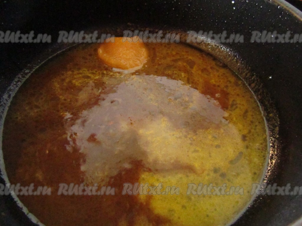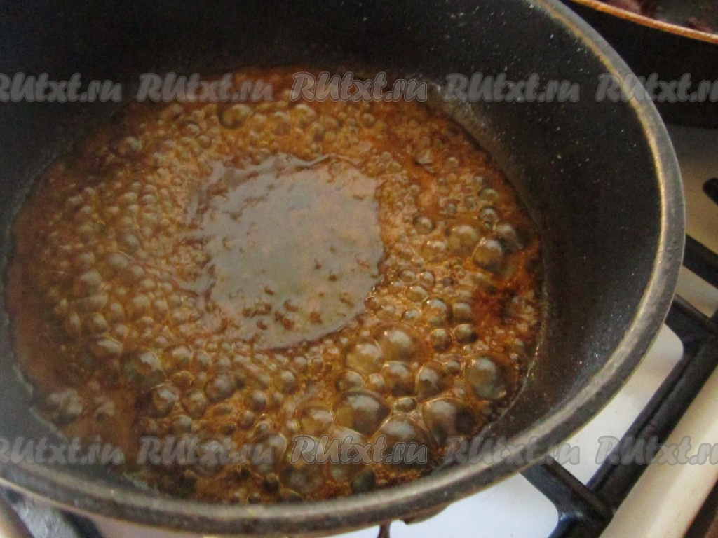 Доводим до кипения и выпариваем соус несколько минут, пока он не начнёт густеть и карамелизироваться.