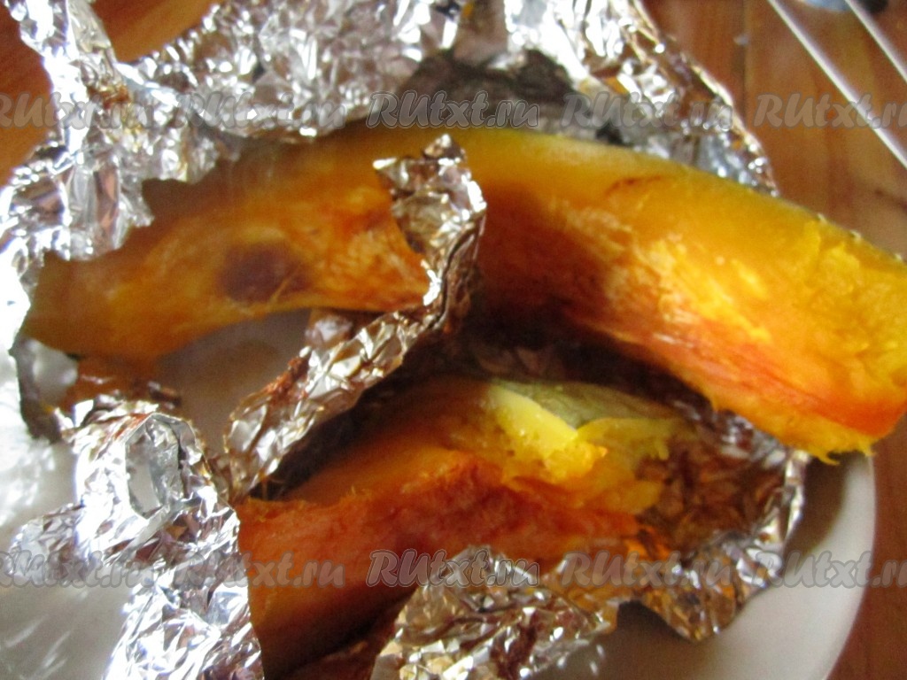Тыкве нужно запекаться 20-30 минут, поэтому её достаём раньше.