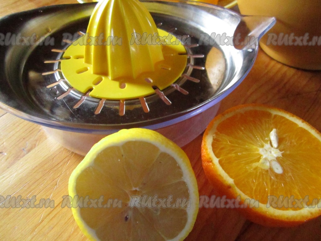 Из половинки лимона и половинки апельсина выжмем сок.