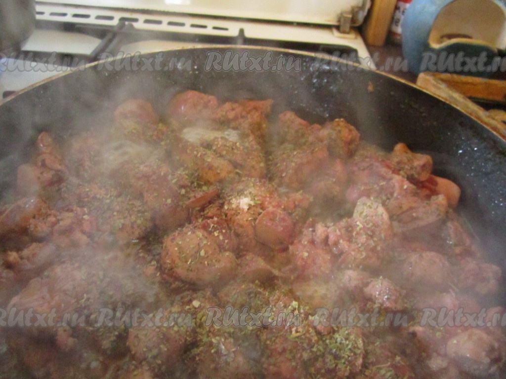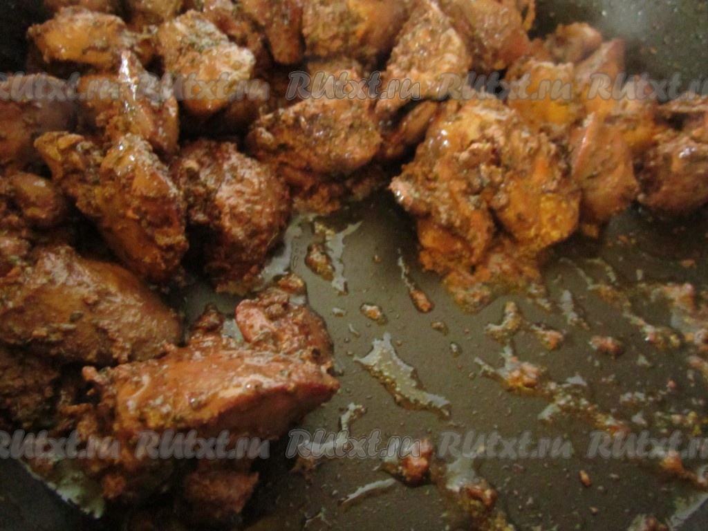 Обжариваем ещё буквально несколько минут. Вот такая получается печёнка.
