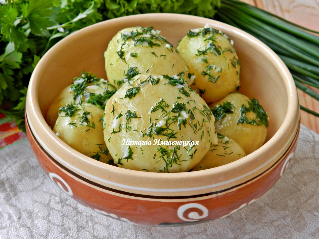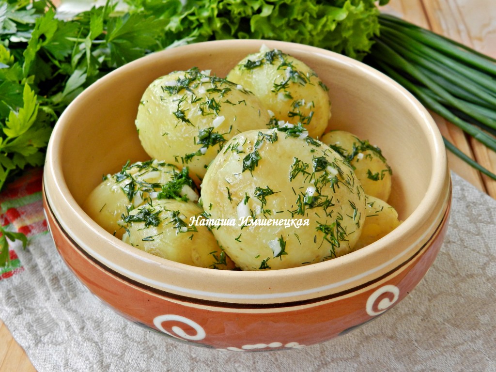 Молодой отварной картофель может быть замечательным гарниром к различным мясным или рыбным блюдам. А также хорош и сам по себе, особенно если подать его в горячем виде с ароматным маслом с добавлением молодого чеснока и свежего укропа. К молодому отварному картофелю приготовьте салат из свежих овощей и у вас получится отличный ужин для всей семьи!