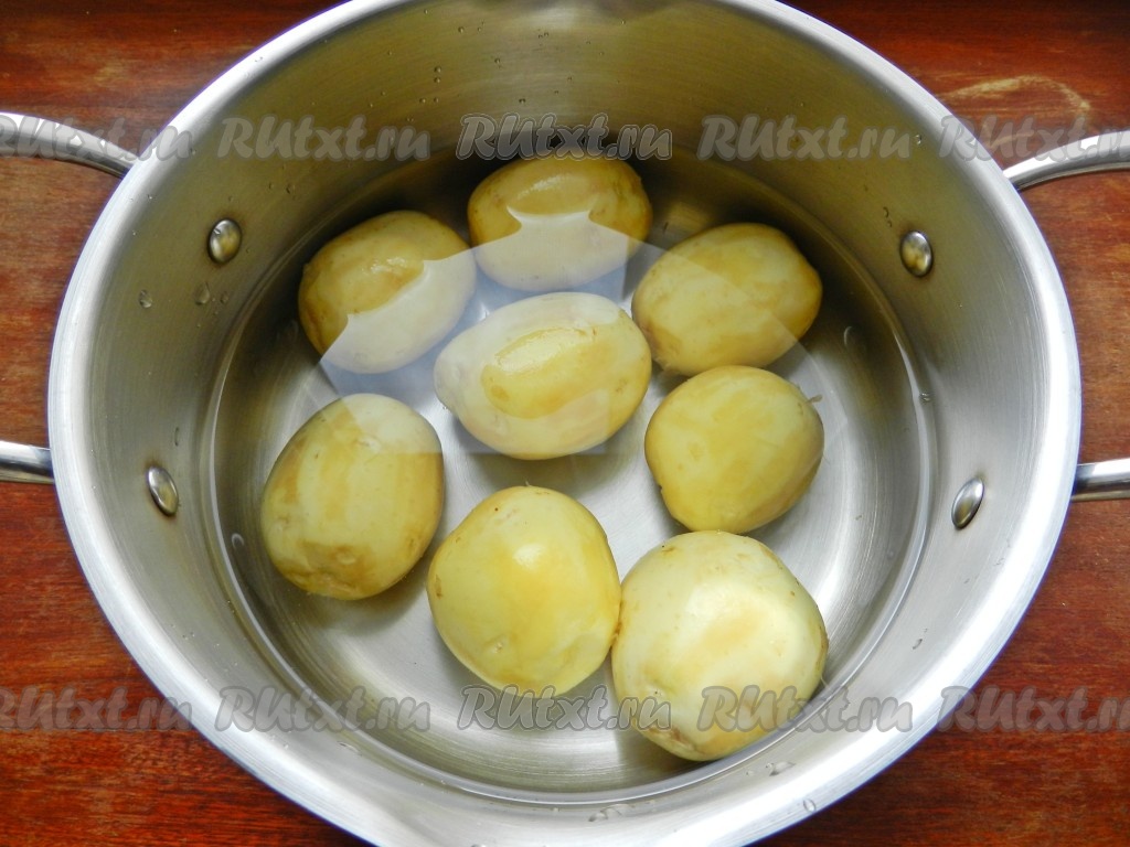 Картофель очистить, залить холодной водой и поставить варить. Когда вода закипит, добавить по вкусу соль и варить картофель на небольшом огне до готовности.