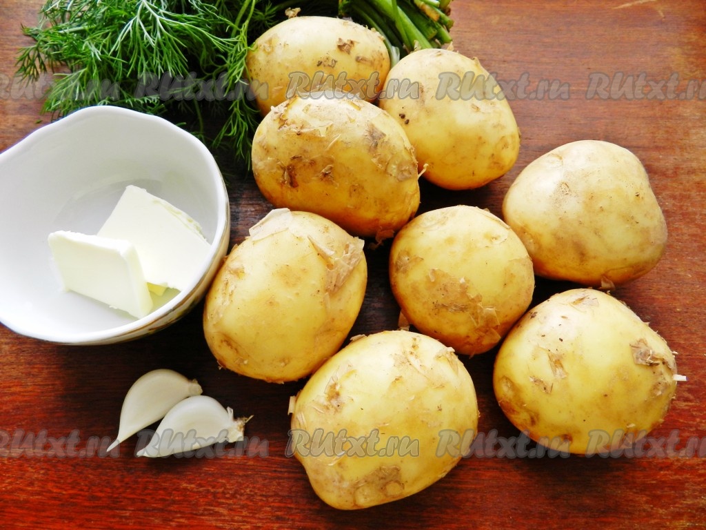 Когда картофель сварится, слить из кастрюли всю воду и добавить масло. Кастрюлю немного потрясти, чтобы масло равномерно распределилось. Подавать сразу же.
