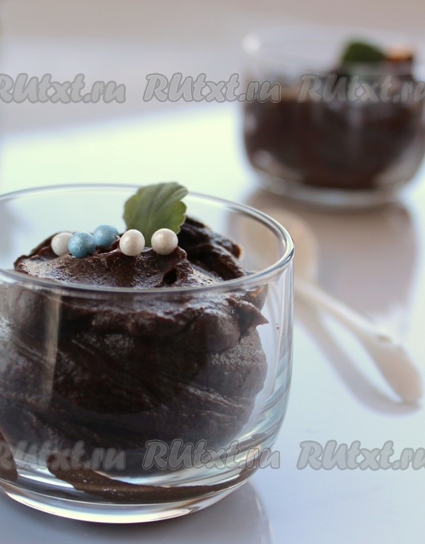 Готовый десерт переложить в креманку и можно подавать к столу. Шоколадная паста, благодаря авокадо, получается нежнейшей, с приятной шелковистой структурой.