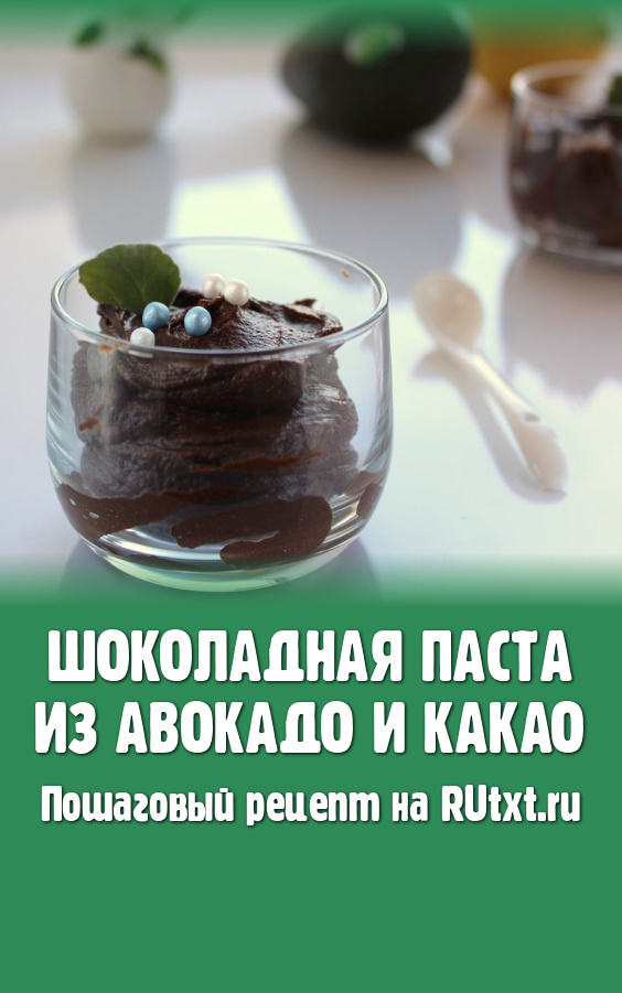 Этот чудесный рецепт шоколадной пасты из авокадо и какао взят из книги о вегетарианстве. Готовится десерт из вполне доступных продуктов за несколько минут. Паста получается нежнейшей, имеет приятную шелковистую структуру. Очень вкусно, попробуйте!