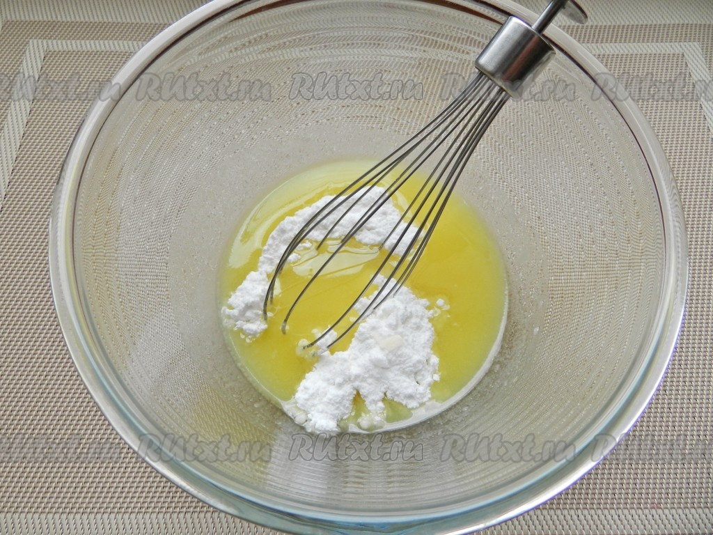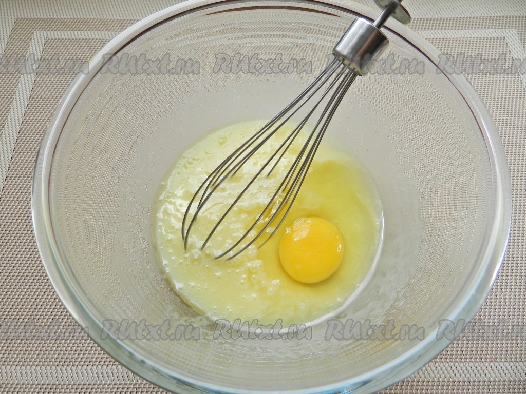 Затем добавить яйцо и взбить яично-масляную смесь венчиком до однородности.