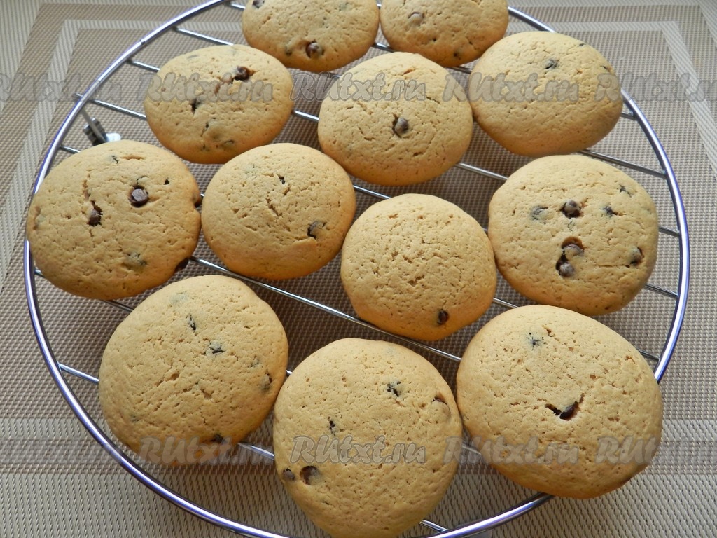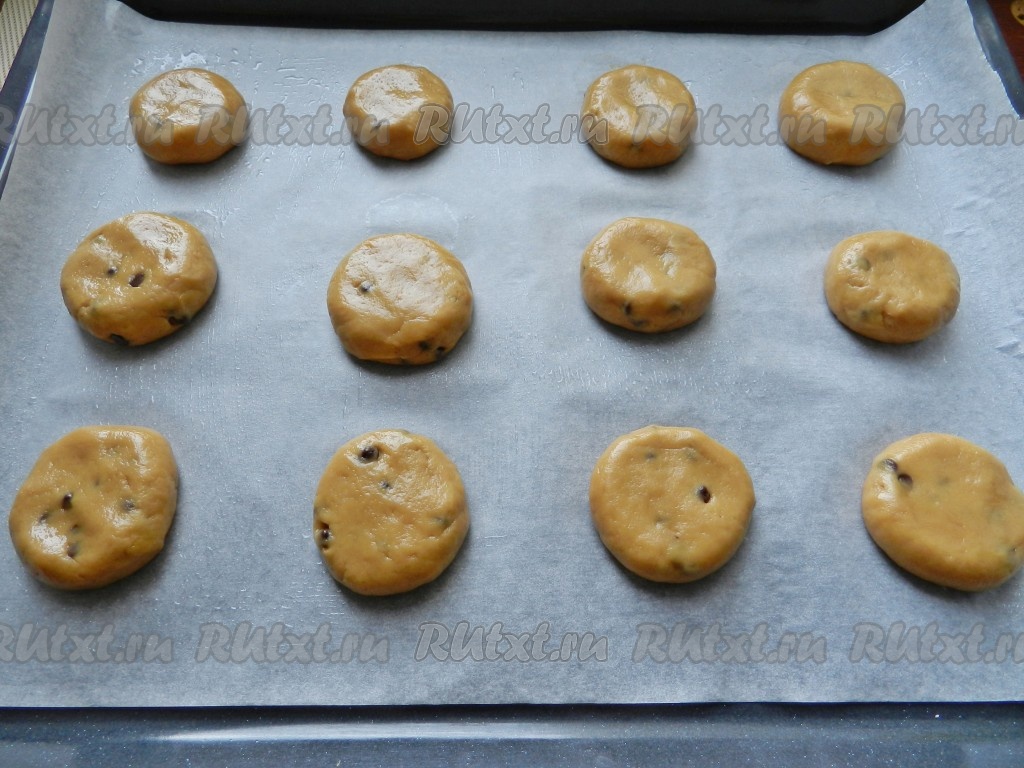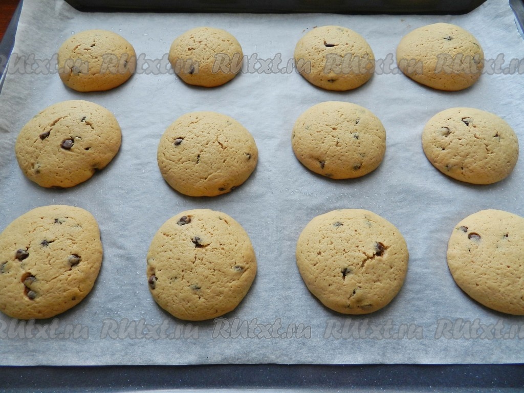 Противень поставить в разогретую до 190 градусов духовку и выпекать печенье с шоколадными каплями в течение 15 минут.
