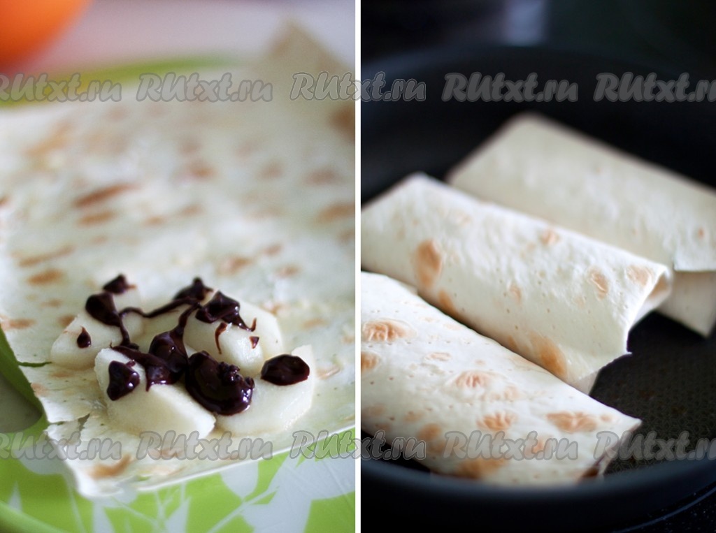 У нас в семье любовь к разнообразным закускам из лаваша. Будь то шаурма, сытный ролл или рулетики с пастообразной начинкой! Все это очень вкусно и быстро готовится. Поэтому я не останавливаюсь на достигнутом и экспериментирую с начинками. На днях я угощала мужа вкусными конвертиками с фруктами и шоколадом. ММм... объеденье - отметил любимый :)