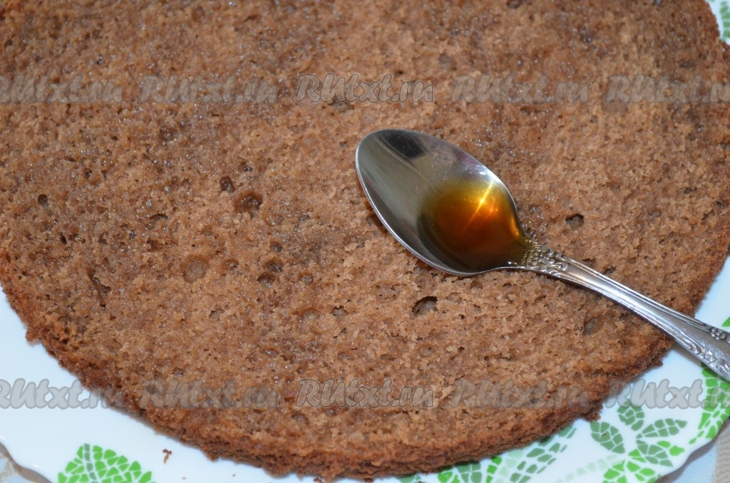 Пропитать коржи теплым кофе.