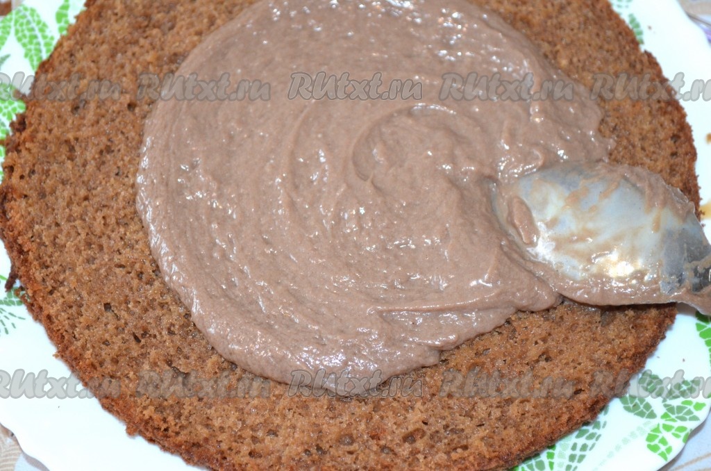 И смазать коржи кремом, немного оставив для боков.