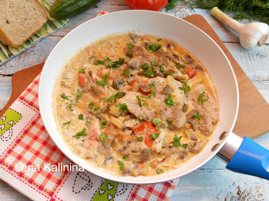 Свинина с грибами на сковороде получается такой вкусной, что Вы обязательно приготовите это блюдо еще не один раз. Готовится очень просто и быстро. Подать можно с овощами, салатом, макаронами или любым гарниром по Вашему усмотрению. Рекомендую!