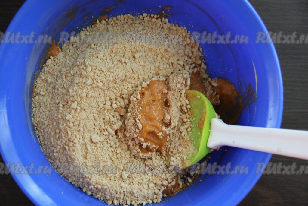 Всю массу перемешать хорошо миксером или ложкой.