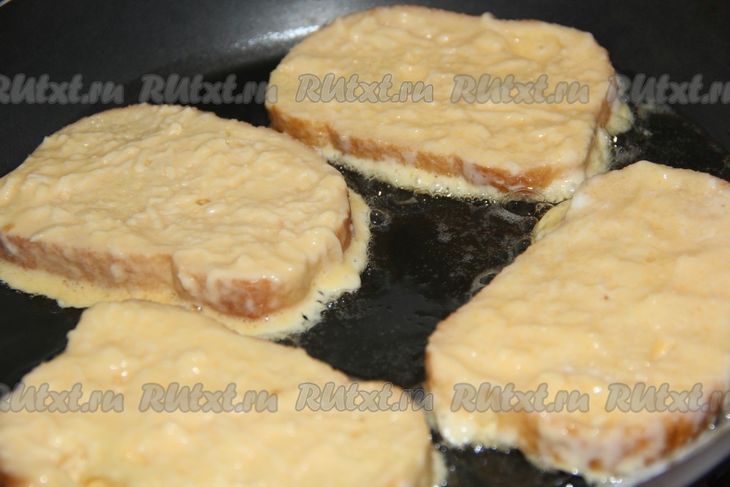 Обжарить сырные гренки с двух сторон до золотистого цвета.