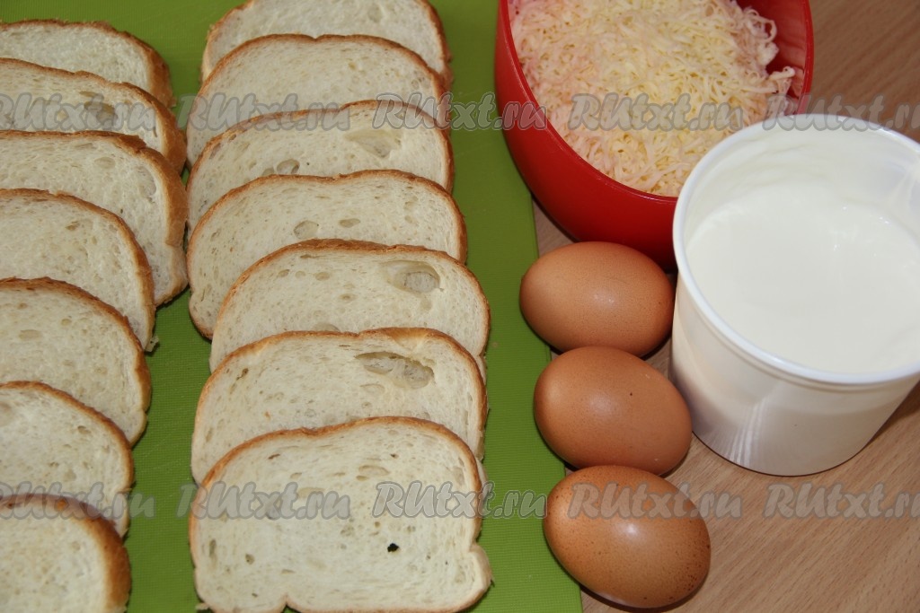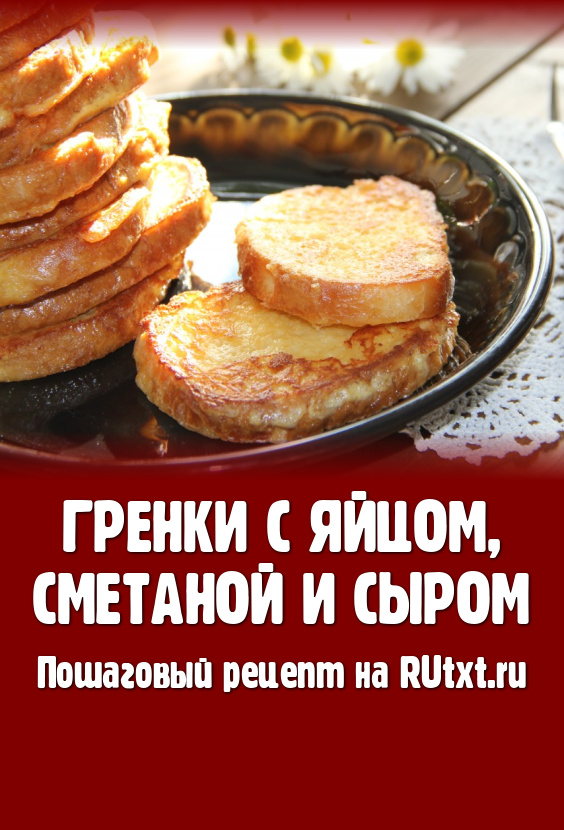 Гренки, покрытые смесью из яиц, сметаны и натёртого сыра, получаются аппетитными, сытными и очень вкусными. Горячие греночки подать к столу к чаю или кофе.
