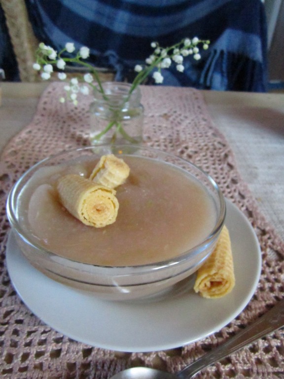 Загустевший кисель из ревеня и яблок разольём в креманки или небольшие порционные ёмкости. Перед подачей его нужно полностью остудить.