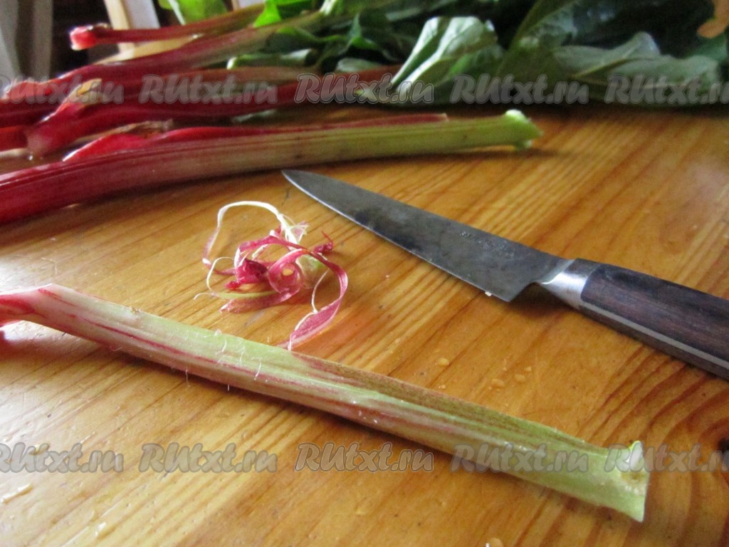 Черешки ревеня моем и немного скоблим, удаляем прожилки.