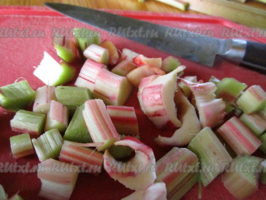 Ревень нарезаем маленькими кусочками поперёк волокон.