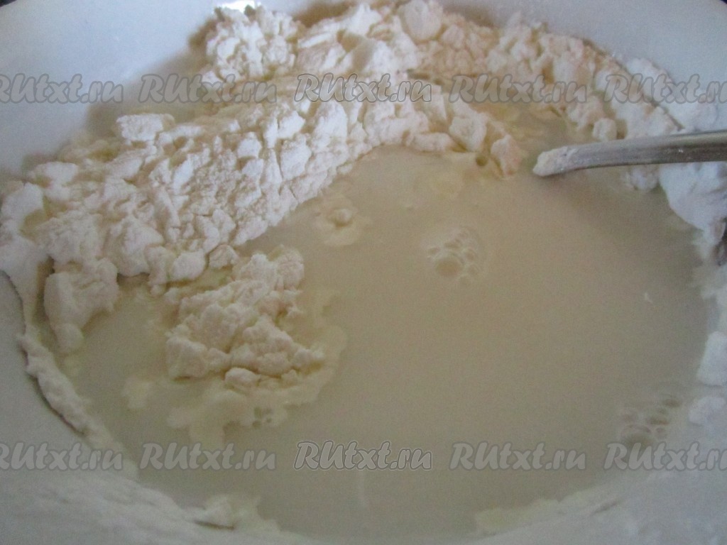 В отдельной ёмкости зальём картофельный крахмал стаканом холодной воды. Тщательно размешаем.
