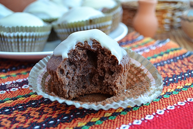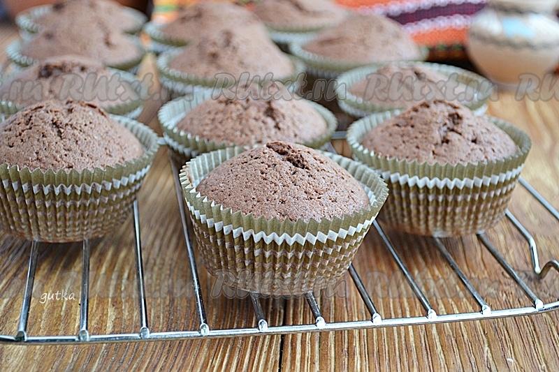 Украсить не горячую выпечку глазурью. А вот такими пористыми внутри получаются шоколадные маффины, приготовленные на сметане.