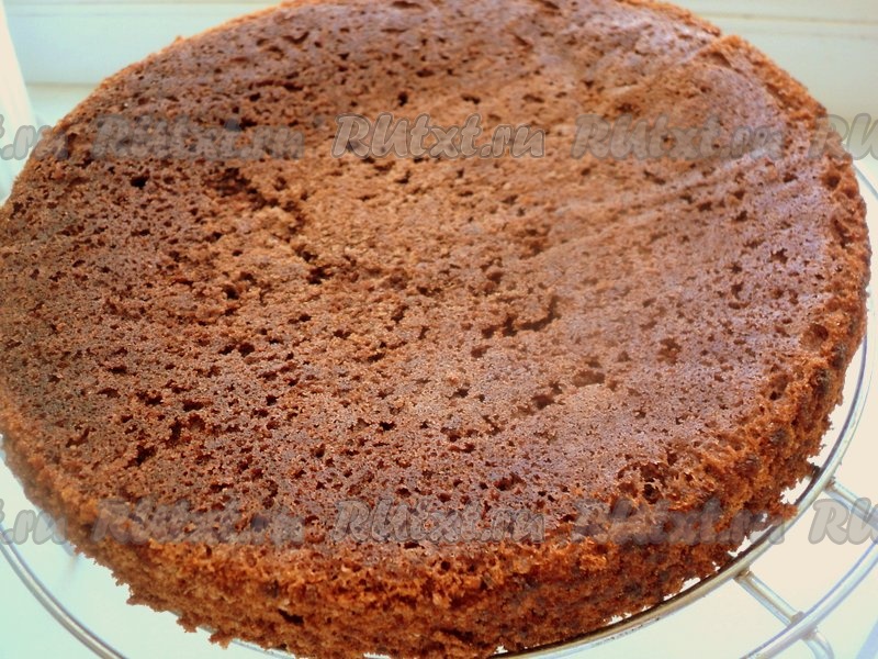Выпекать в разогретой духовке при температуре 180 градусов 20 минут. Охладить, перевернув бисквит на решетку.