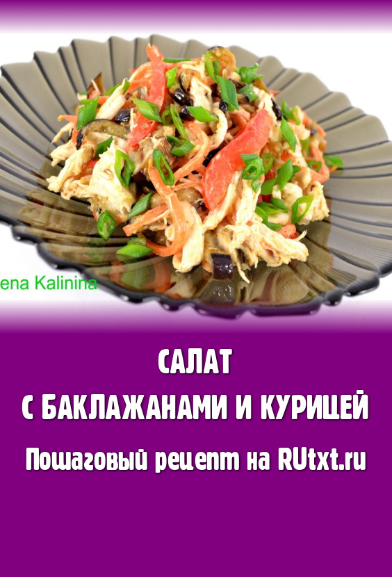 Предлагаю Вам попробовать очень вкусный, простой в приготовлении салат с баклажанами и курицей. Салат я заправила небольшим количеством майонеза, но можно этого и не делать. Овощи обжариваются на растительном масле, которое свяжет салат и без майонеза. Просто и очень вкусно!