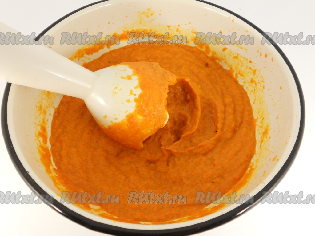 Переложить овощи в глубокую миску и взбить погружным блендером до однородной массы.