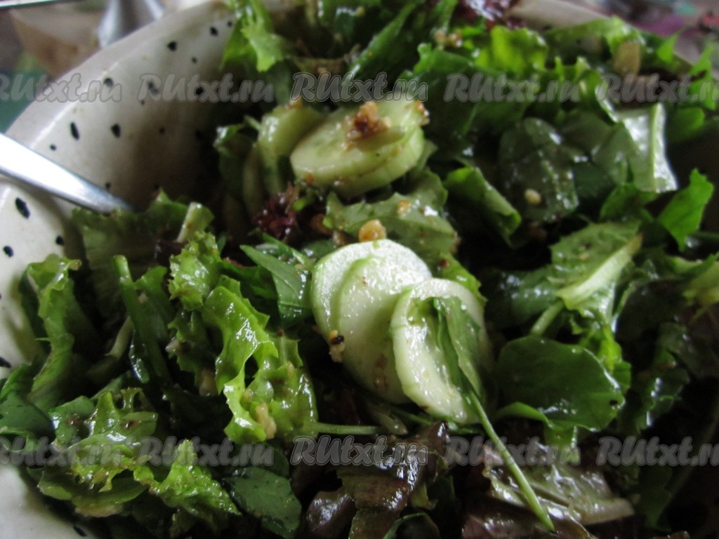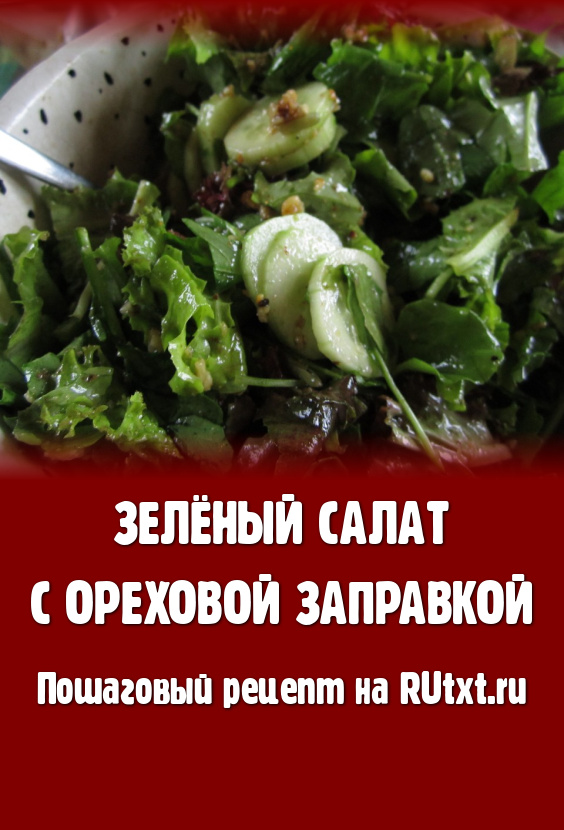 Подавайте зелёный салат с ореховой заправкой на стол и сразу ешьте!