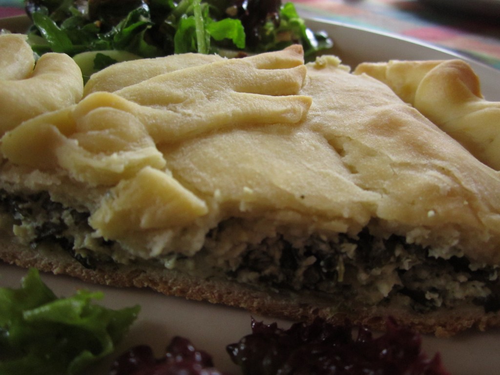 Пирог с творогом, щавелем и зеленью можно резать! А можно оставить до полного охлаждения и есть холодным!