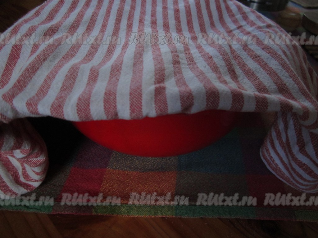 Накройте миску с тестом полотенцем и поставьте в тёплое место на 40 минут подходить.