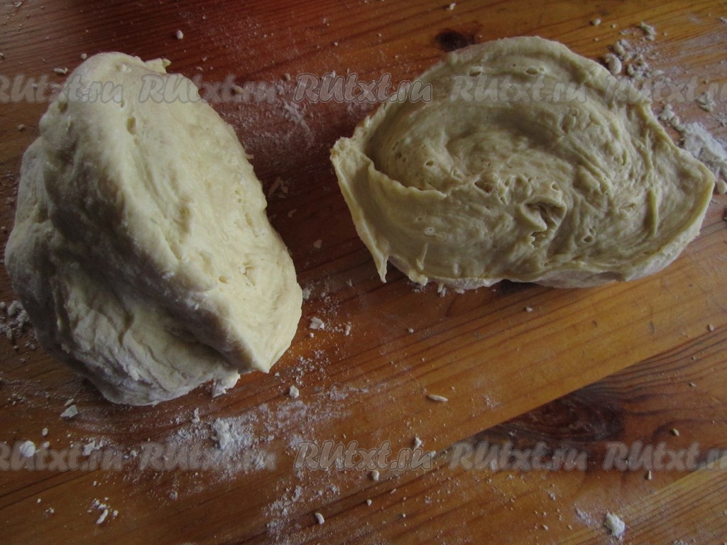 Когда тесто снова поднимется, промесите его ещё раз и разделите пополам.