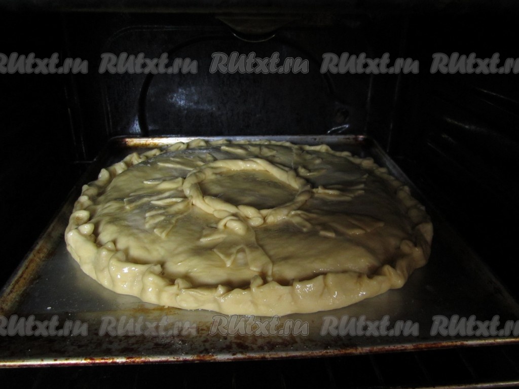 Сверху пирог щедро смажьте подсолнечным маслом.