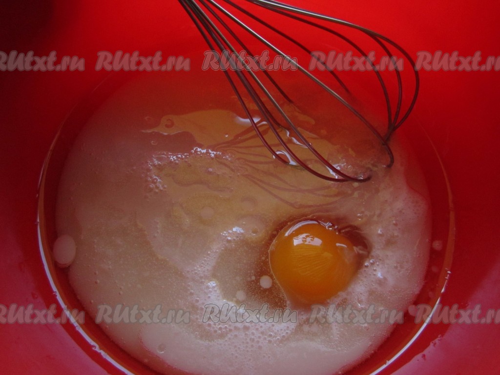 Добавьте к растворённым дрожжам подсолнечное масло, яйцо и соль. Хорошо размешайте.