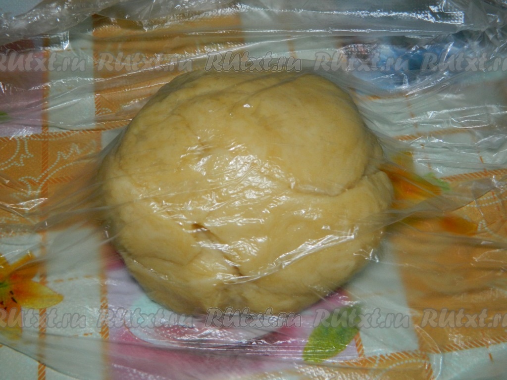 В смесь масла и очень горячей воды добавляем сахар, соду и грамм 100 муки, перемешиваем столовой ложкой. Частями добавляя оставшуюся муку и каждый раз полностью вмешивая её, замешиваем мягкое, нежное, не липнущее к рукам постное песочное тесто. Тесто заворачиваем в плёнку (или помещаем в целлофановый пакет) и оставляем на столе отдохнуть минут на 30.